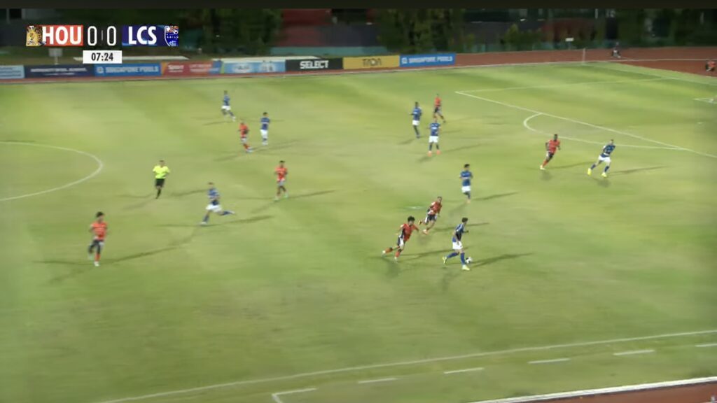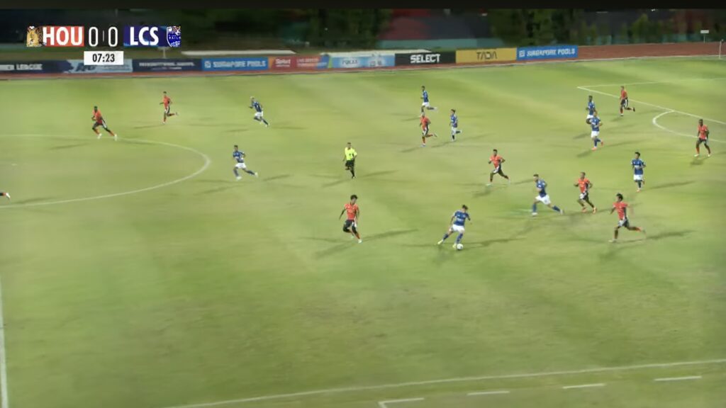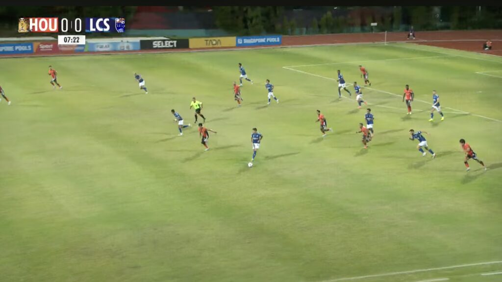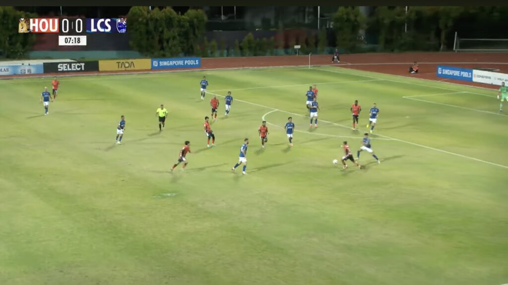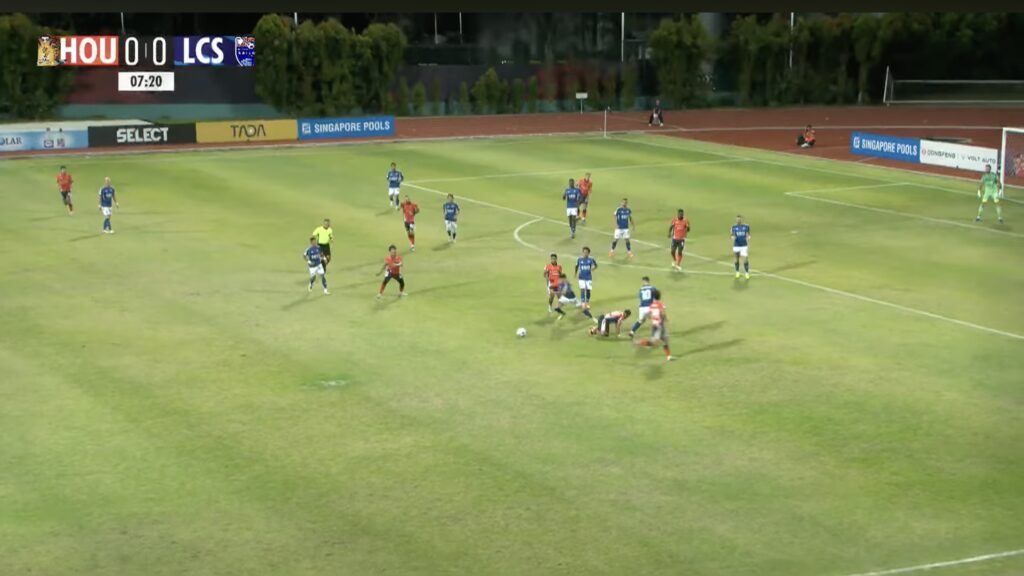 8′: LCS No.29 Diogo Costa recovers the ball outside the LCS penalty box, rendering six HOU players out of position.