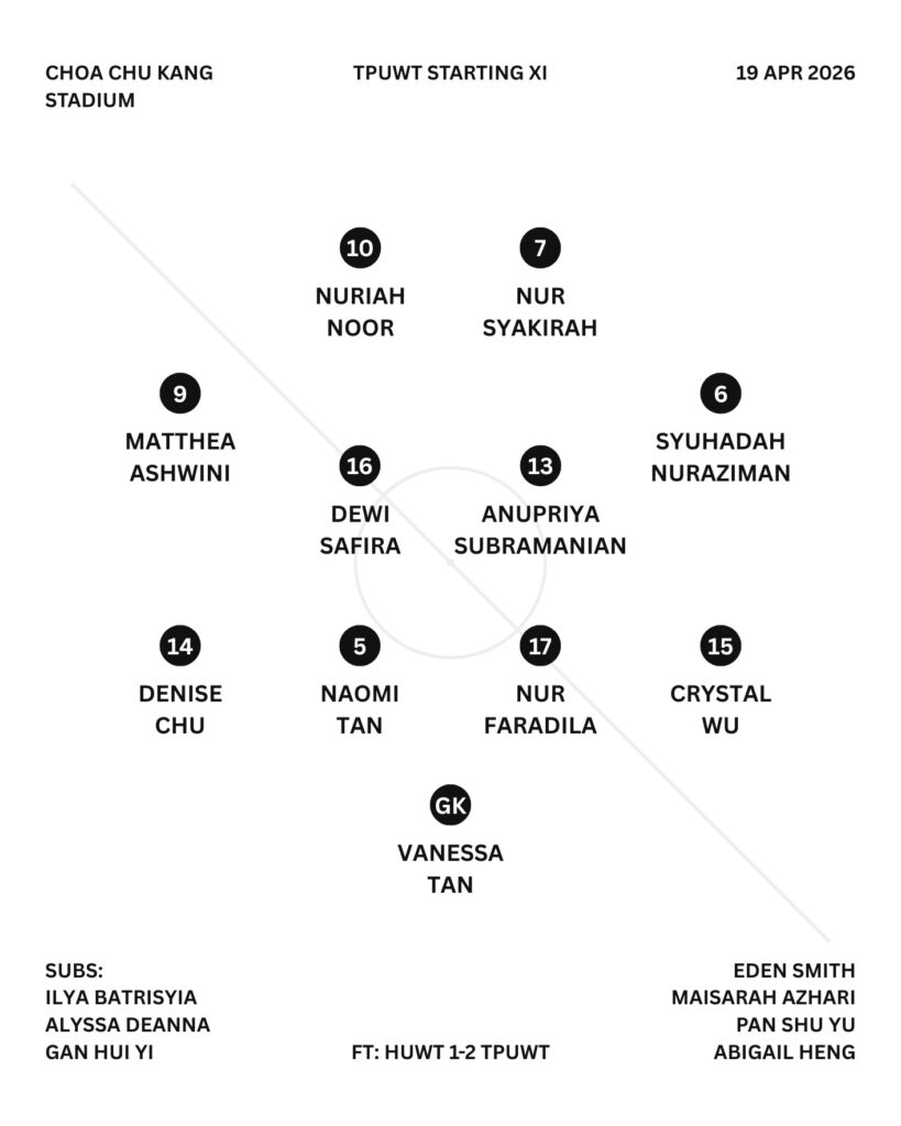 [SGWPL] Teamsheet: HUWT 1-2 TPUWT | 19 Apr 2026