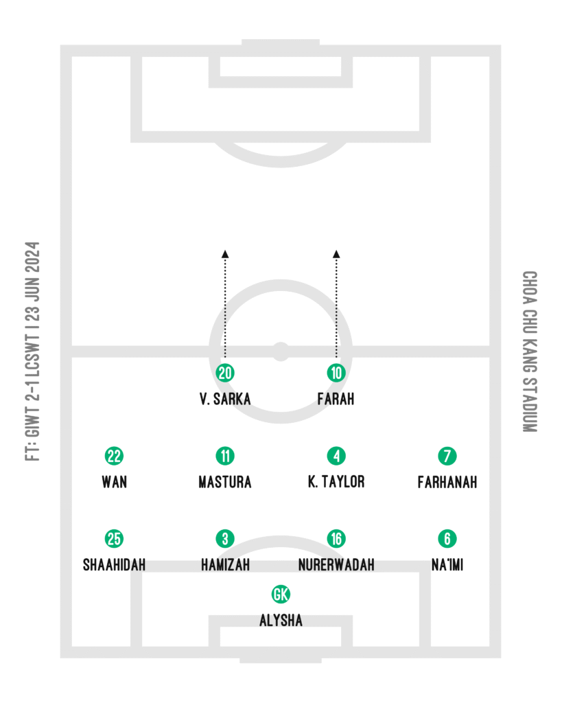 - LCSWT to start No.9 Raeka Ee and No.20 Dorcus Chu as outright strikers.
