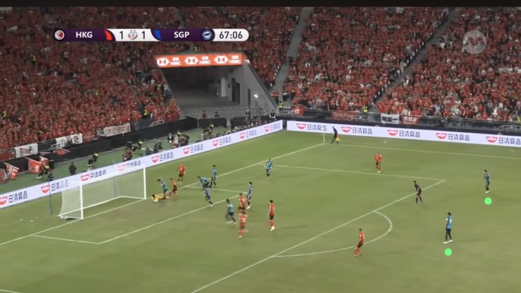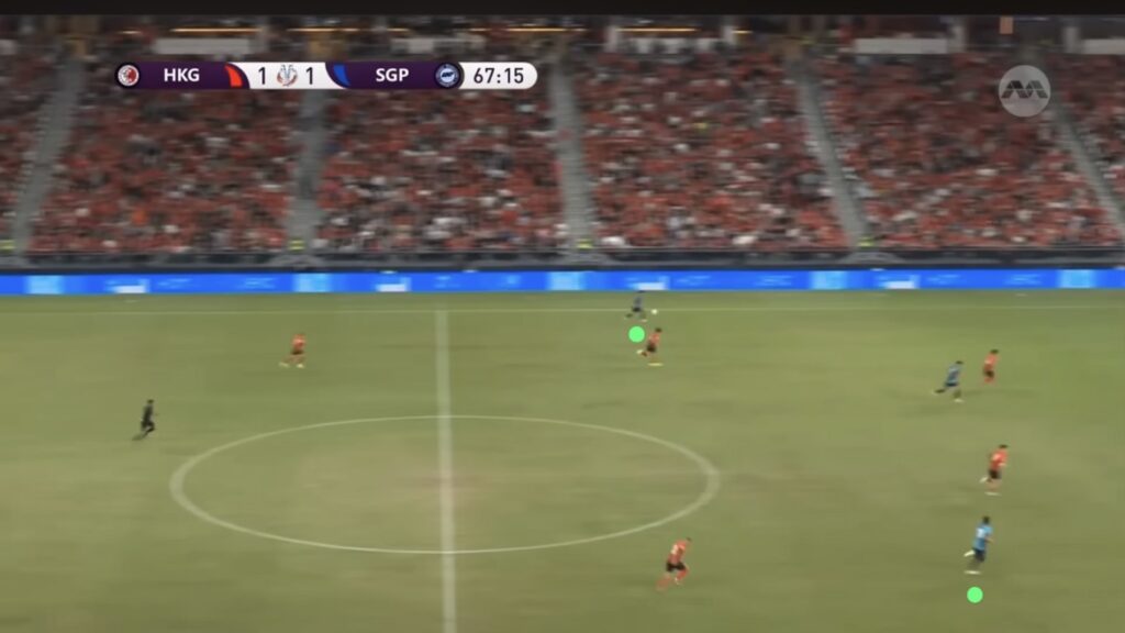 - 68’: From standing just outside the SGP penalty box (to defend a HKG throw-in), SGP forwards Song Uiyong, Ikhsan Fandi and Ilhan Fandi burst past the halfway line to make the most of a quick SGP GK Izwan long ball. The rest of the SGP calvary would eventually arrive to flood the HKG penalty box, but Ilhan decided it had to be him. History made.
