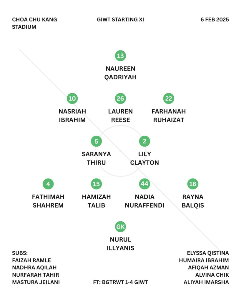 [SGWPL] Teamsheet: BGTRWT 1-4 GIWT | 6 Feb 2026