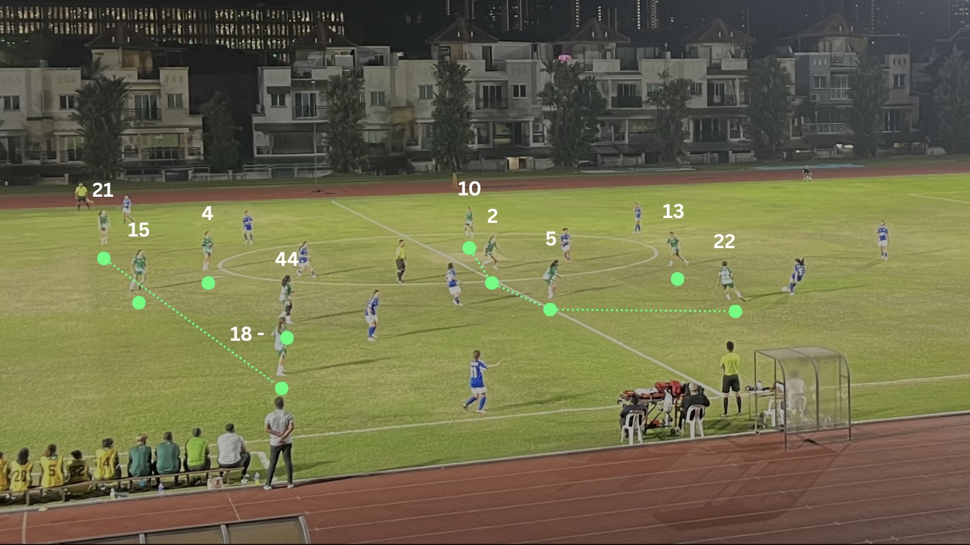 Took a close-range shot to the head from an opposition cross in the left wide area. Everyone in the stand heard the ricochet and was immediately like, OMG. Stood up, received some treatment on the sideline and got on with the big ask of defending against a free-scoring ALBWT looking to outdo their title competitor.