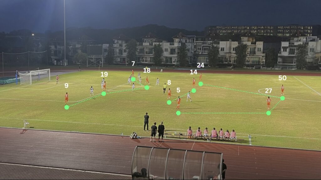 Took a close-range shot to the head from an opposition cross in the left wide area. Everyone in the stand heard the ricochet and was immediately like, OMG. Stood up, received some treatment on the sideline and got on with the big ask of defending against a free-scoring ALBWT looking to outdo their title competitor.
