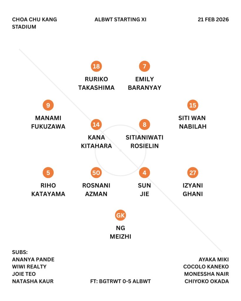 If both teams keep to their usual formations (LCSWT: 4-3-3 / 4-1-4-1 | ALBWT: 4-4-2), LCSWT’s midfield three will be a real test for the ALBWT midfield duo of ALBWT No.8 Sitianiwati Rosielin ALBWT No.14 Kana Kitahara. One of the ALBWT centre forwards will likely have to spend more time in midfield assisting with build-up and OOP pressing.
